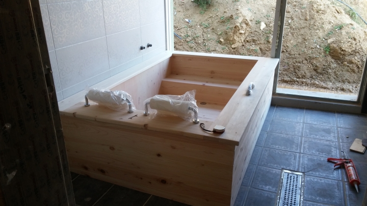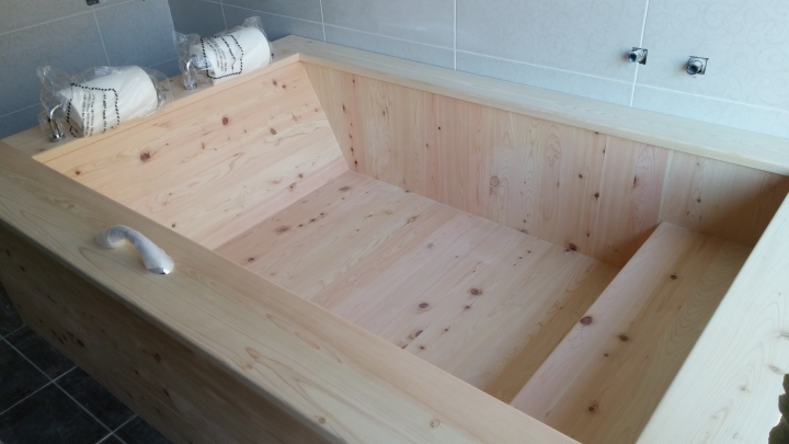 히노끼 유절 욕조 입니다. 머리받이, 손잡이, 내부의자 옵션사항입니다.