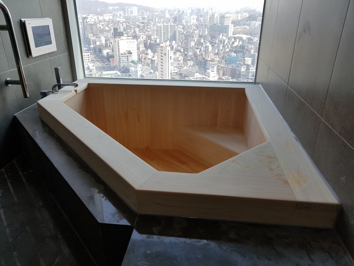 주상 복합 아파트에 히노끼 오각형 설치 사례 입니다.